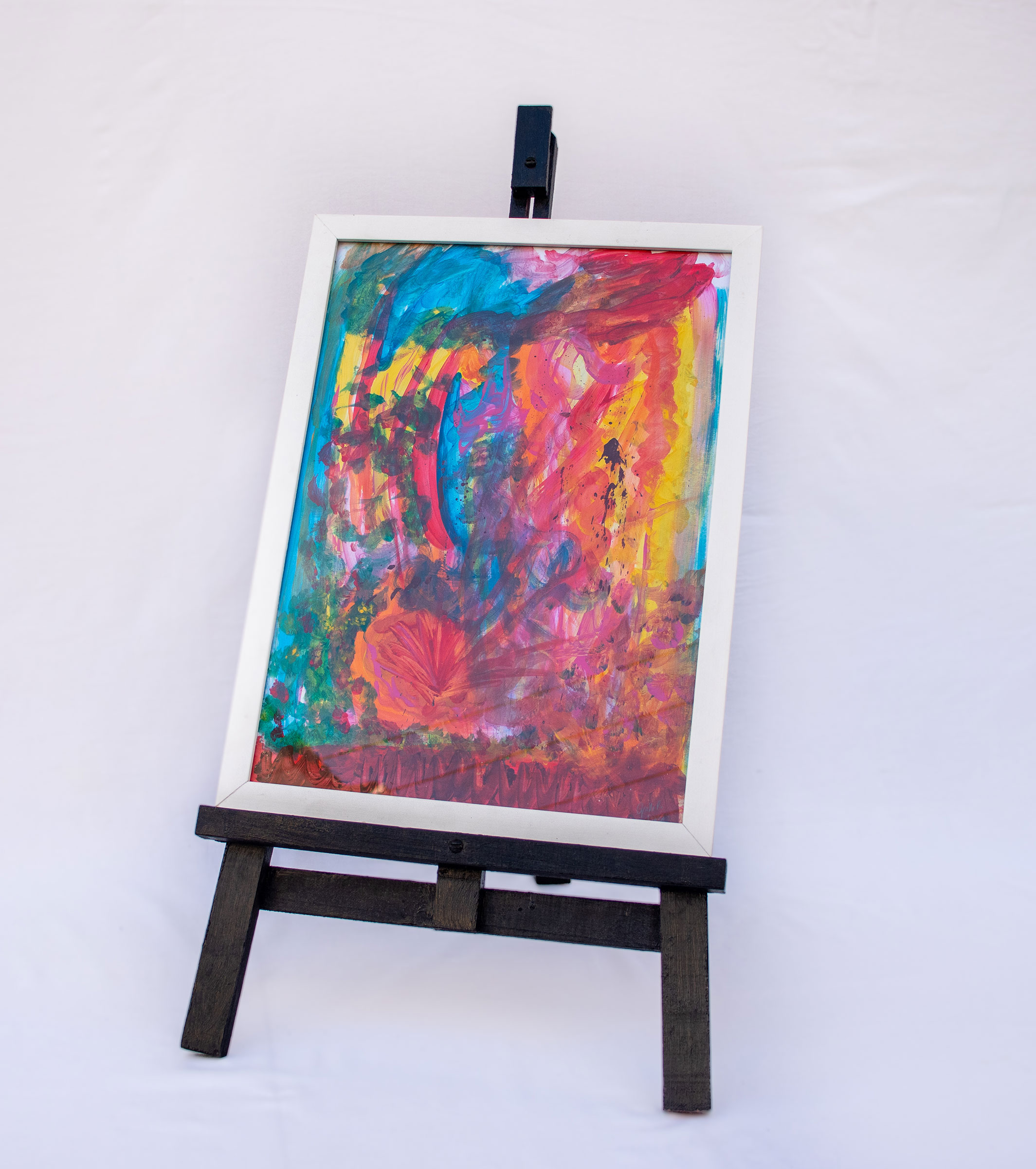 Desenho feito em conjunto por Giselle Pacheco e Luiza Araujo utilizando guache sobre papel emoldurado com vidro.