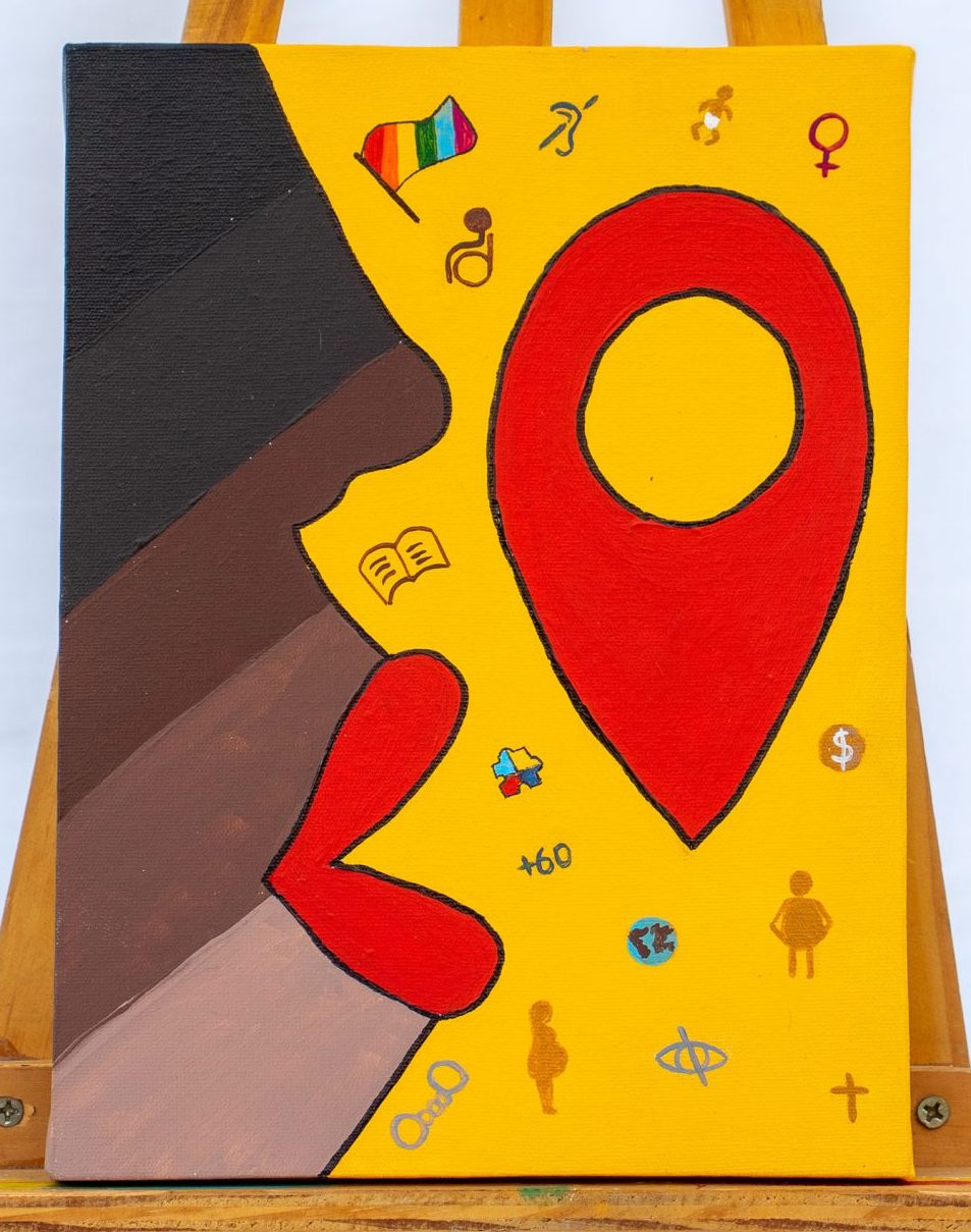 Pintura de Giselle Pacheco utilizando tinta acrilica sobre tela no caixonete de madeira