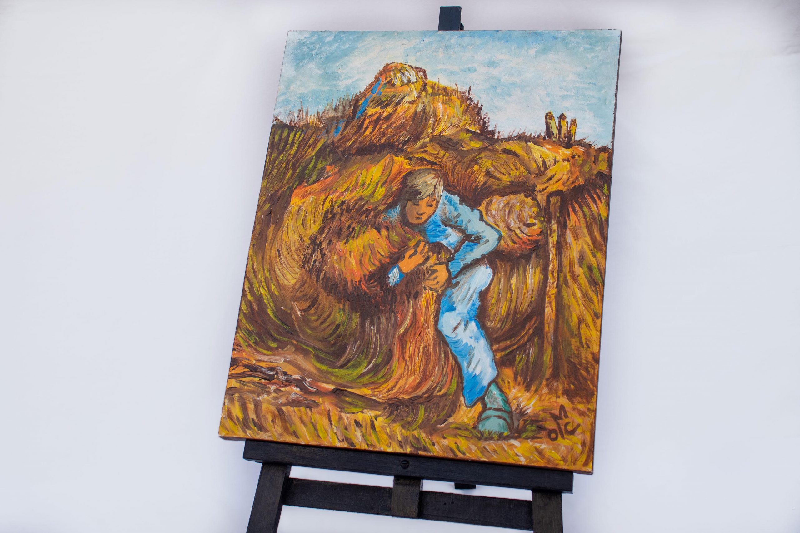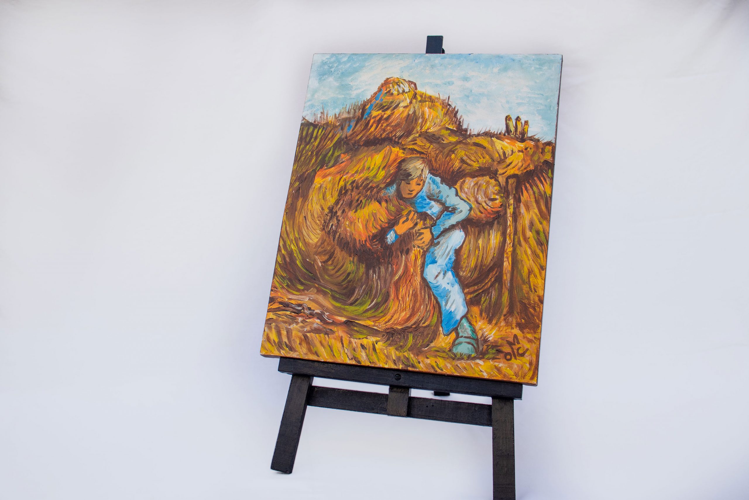 Pintura de Marcio Cunha sobre tela no caixonete de madeira